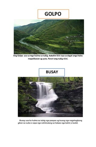 Learn vocabulary terms and more with flashcards games and other study tools. Araling Panlipunan 28102019 1829 hajuyanadoy. Giunsa paglabotay sa mga porma sa tubig ug yuta.