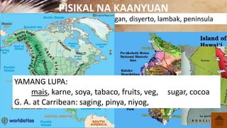 YAMANG TUBIG Mackerel - Alimango Ulang Bass at Salmon 21. North America ay isang kontinente sa Hilagang Emisperyo ng Daigdig at halos na nasa Kanlurang EmisperyoNapapaligiran ito ng Karagatang Artiko sa hilaga Hilagang Karagatang Atlantiko sa silangan Dagat Caribbean sa timog-silangan at Hilagang Karagatang Pasipiko sa timog at kanluran. Nakukuha natin ang ating mga YAMANG LUPA mula sa ating mga ANYONG LUPA 12.